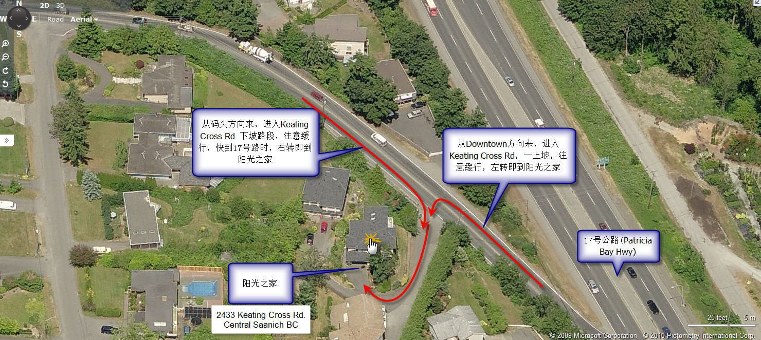 从温哥华(Tsawwassen)码头开车上渡轮,经过1个半小时航行到维多利亚(Swartz Bay)码头,下船后开车到阳光之家只要15分钟,为方便您快速准确地找到我们,请您花少许时间,点击以下链接,事先熟悉我们的位置。